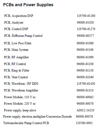 AB API2000 | AB Mariner | TSQ7000 | LCQ Series | LTQ Series | Quantum | LTQ Orbitrap | Q-Exactive | Fusion | TSQ 8000 |